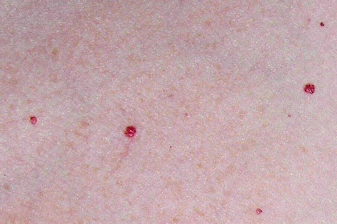 A 38-year-old woman comes to the office for evaluation of several red, painless lesions on her chest and abdomen that she first noticed 4 months ago. Medical history is remarkable only for occasional headaches, which she describes as generally right sided and throbbing, with associated nausea and photophobia. Ibuprofen partially relieves the pain. She also takes an oral contraceptive. Her last menstrual period was 3 weeks ago. She is sexually active with one male partner and they do not use condoms. She has smoked one-half pack of cigarettes daily for the past 15 years and she drinks one beer daily. Vital signs are normal. Physical examination discloses several small (3 to 5-mm), slightly raised, erythematous lesions on her chest and abdomen as shown. Which of the following is the most appropriate diagnostic study?