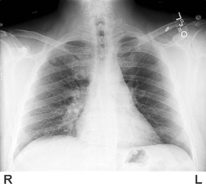 A chest x-ray is shown. Which of the following is the most appropriate next step in management?