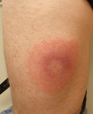 A 23-year-old man who is a landscaper comes to the office because of a 3-month history of lethargy, diffuse muscle aches, and knee pain. He also had a rash on his left knee 3 months ago similar to the one shown in the photograph. One month ago, he had an episode of right knee pain that resolved after 5 days. He now has left knee pain. Temperature is 37.6°C (99.7°F), pulse is 100/min, and respirations are 16/min. Physical examination shows swelling of the left knee; there is no rash. Which of the following is the most appropriate next step in management?