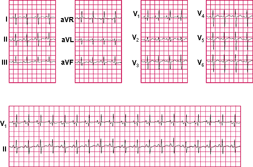 A 62-year-old man with chronic obstructive pulmonary disease comes to the physician because of a 1-month history of leg swelling and progressive shortness of breath. He has not had fever or cough. He smoked one and one-half packs of cigarettes daily for 45 years but quit 1 year ago. His medications are theophylline and albuterol and ipratropium inhalers. His temperature is 36.7°C (98°F), pulse is 96/min, respirations are 22/min, and blood pressure is 150/76 mm Hg. Examination shows jugular venous distention 10 cm above the sternal angle. Breath sounds are markedly decreased throughout all lung fields. Cardiac examination shows decreased heart sounds with no murmurs, gallops, or rubs. The liver edge is palpated 3 cm below the right costal margin. There is 2+ pitting edema to the knees. His FEV1 is 1.05 L (40% of predicted). Arterial blood gas analysis on room air shows: