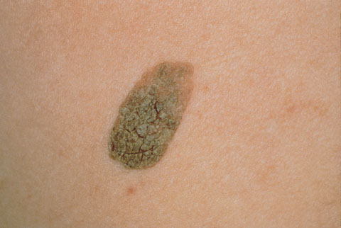 A 72-year-old man is brought to the physician by his wife because of a 5-year history of progressive, waxy, dry, scaly lesions over his back. He has no history of serious illness or known allergies. His only medication is 81-mg aspirin. Examination shows approximately 20 nonpruritic lesions scattered over the back; the lesions range from 1 to 4 cm in diameter. A photograph of one of the lesions is shown. Which of the following is the most appropriate next step in management?