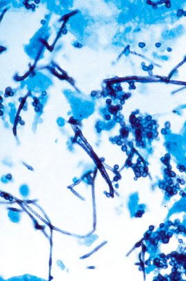 An 18-year-old woman comes to the physician because of a 5-year history of recurrent, painful sores in her mouth and vagina. Multiple over-the-counter topical preparations have provided only temporary resolution of the sores. She is unable to identify any predisposing factors. One year ago, she had an episode of “walking pneumonia” treated with azithromycin. She has been otherwise healthy. Her mother has type 2 diabetes mellitus but is otherwise well. The patient has never been sexually active. Her temperature is 37°C (98.6°F), pulse is 84/min, respirations are 16/min, and blood pressure is 132/72 mm Hg. Examination shows scattered white plaques over the buccal mucosa and palate that are friable and bleed when scraped with a cotton swab. The toenails are yellow and thickened. Pelvic examination shows thick, white vaginal discharge and erythematous vaginal mucosa. There is mild cervical motion tenderness and no adnexal tenderness or masses. Which of the following is the most likely cause of this patient’s condition?